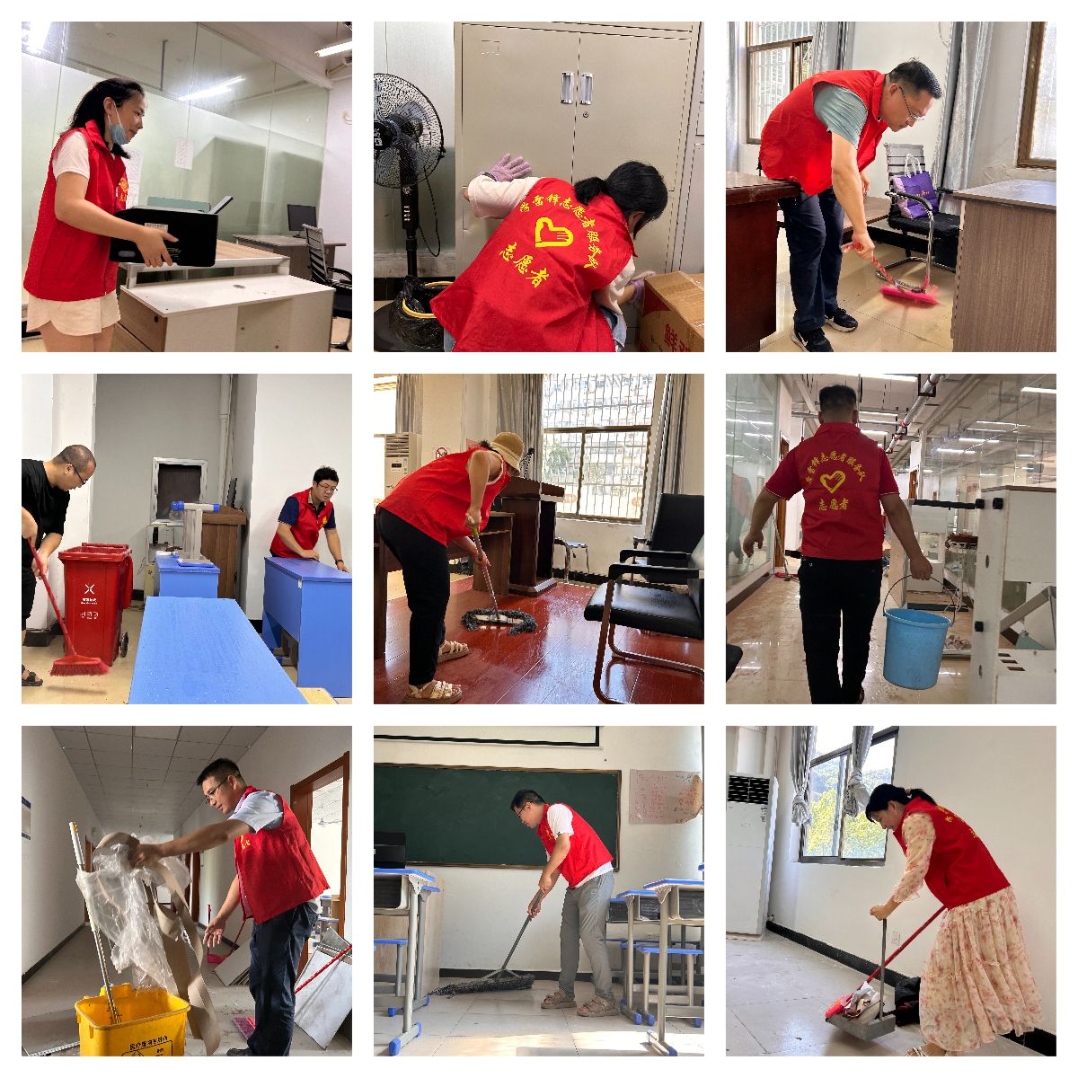 8月18日上午,党总支在湾里校区组织开展“亮身份践初心,净校园树新风”主题活动。支部挂点领导、纪委书记江耀武同志亲临现场,学院全体党员干部及入党积极分子参加。在学校领导的亲自带领下,党员干部主动认领重难点区域,带头攻坚克难。面对杂乱的桌凳、积尘的地面等,同志们发扬不怕苦、不怕累的精神,团结协作、埋头苦干。经过约三小时的共同努力,高质量完成16间办公室的全面清扫和文件资料规范整理,彻底清理46间教室的课桌椅和地面卫生,并对机房实训设备进行专业除尘维护,为新学期开学营造了整洁舒适的教学环境。