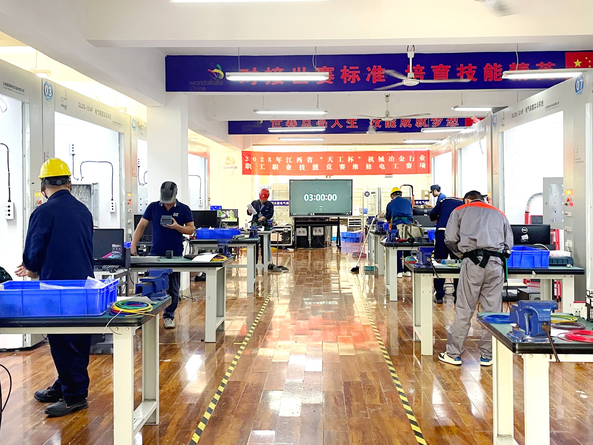 金秋十月,技耀赣鄱。10月14-15日,由江西省总工会主办、我校电子工程学院承办的2025年江西省“天工杯”机械冶金行业职工职业技能竞赛——维修电工赛项,在江西省电子信息技师学院顺利举行。来自江铜集团、江中药业、中国黄金等全省知名企业的30名技术精英齐聚一堂,同台比拼,展现新时代产业工人的精湛技艺和职业风采。