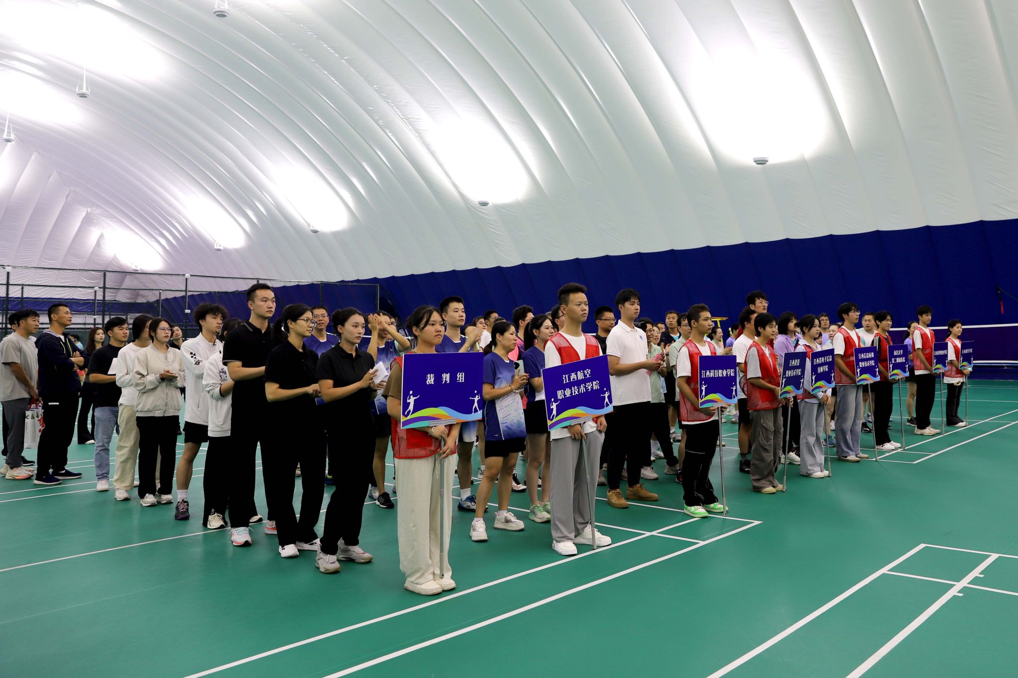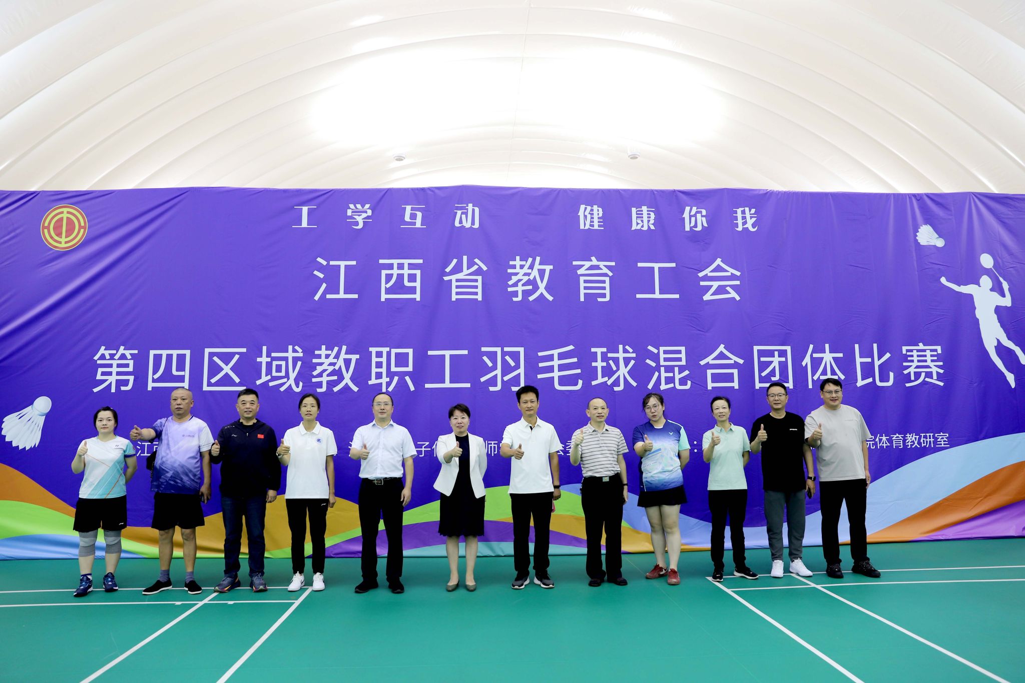 10月18-19日,由江西省教育工会主办、江西省电子信息技师学院工会承办、体育教研室协办的江西省教育工会第四区域教职工羽毛球、气排球比赛在高新气膜体育中心成功举办。江西省教育工会主席宋懿非出席,我校党委副书记、院长游振磊致辞,与会领导和嘉宾共同为比赛开球。学校团委负责人主持开幕式。