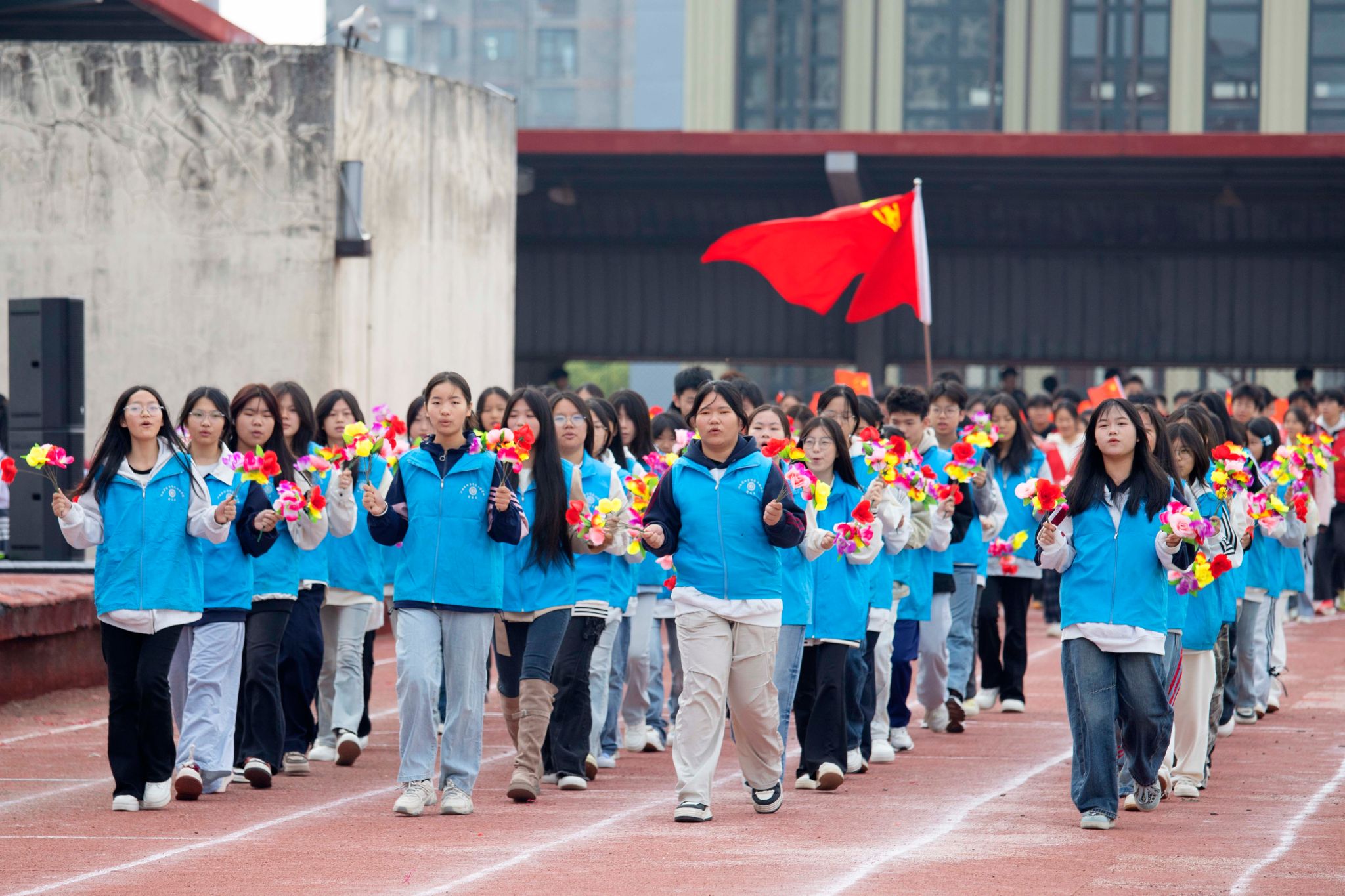花束队队员手捧娇艳花束,笑容明媚,用芬芳与活力传递着对盛会的祝福;青年志愿者队身着统一服装,身姿挺拔,彰显着“奉献、友爱、互助、进步” 的志愿精神。