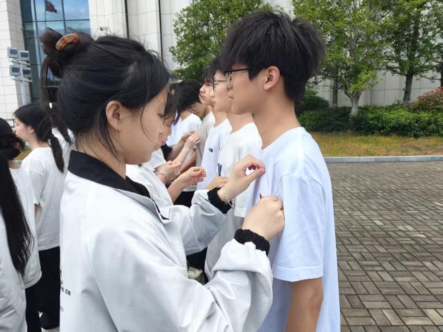 研学结束,紧接着开展新发展团员入团仪式活动。首先,神圣而庄重地佩戴团徽环节,我校优秀团员代表们亲手为新团员代表佩戴上闪耀的团徽。团徽在新团员们的胸前熠熠生辉,它不仅是共青团员身份的鲜明标志,更承载着共青团的光荣历史与伟大使命。随后,全体新团员代表宣读入团誓词,大家右手握拳齐眉过肩,以最洪亮的声音庄严地表达自己的决心。
