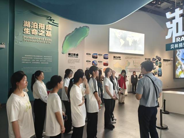 活动现场,团员青年们在专业讲解员的引导下参观了“湖泊·生命·呼唤——贝林捐赠动物标本暨鄱阳湖自然生态展”。青年团员们通过沉浸式学习全球湖泊生态,开启了一场跨越全球的生态之旅。从非洲裂谷湖群的野性之美、北美五大湖的壮阔景观,到欧亚湖泊的多样生态,一件件珍稀动植物标本与数字化展陈,生动呈现了世界湖泊生态系统的独特魅力。团员们通过沉浸式学习全球湖泊生态、感悟鄱阳湖保护成果,以“红色力量”赋能生态保护,在身临其境的沉浸式体验环境中树立热爱自然、保护自然的观念。
