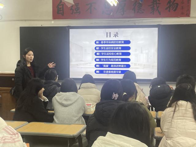 上好收心课,展现新气象。2月19日晚自习,全体班主任深入教室,为学生精心准备并上好返校后的“收心第一课”。课程聚焦交通安全、消防安全、食品安全、心理健康、防诈骗等重点内容,增强学生的安全意识与自我保护能力,引导学生迅速调整状态,投入到新年新学期的学习中。