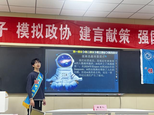 模拟政协社团的学生们化身社会科学界、教育界、妇女界等各界别“政协委员”,依次陈述并展示了各自撰写的提案。模拟政协委员们从现状分析、问题提出、解决方案等角度出发,以条理清晰的逻辑、严谨规范的表达,全面阐述团队的观点。详实的数据支撑、深入的调研成果以及富有创新性的解决思路,充分展现了新时代学生心系家国、勇于探索的青春风采与智慧光芒。