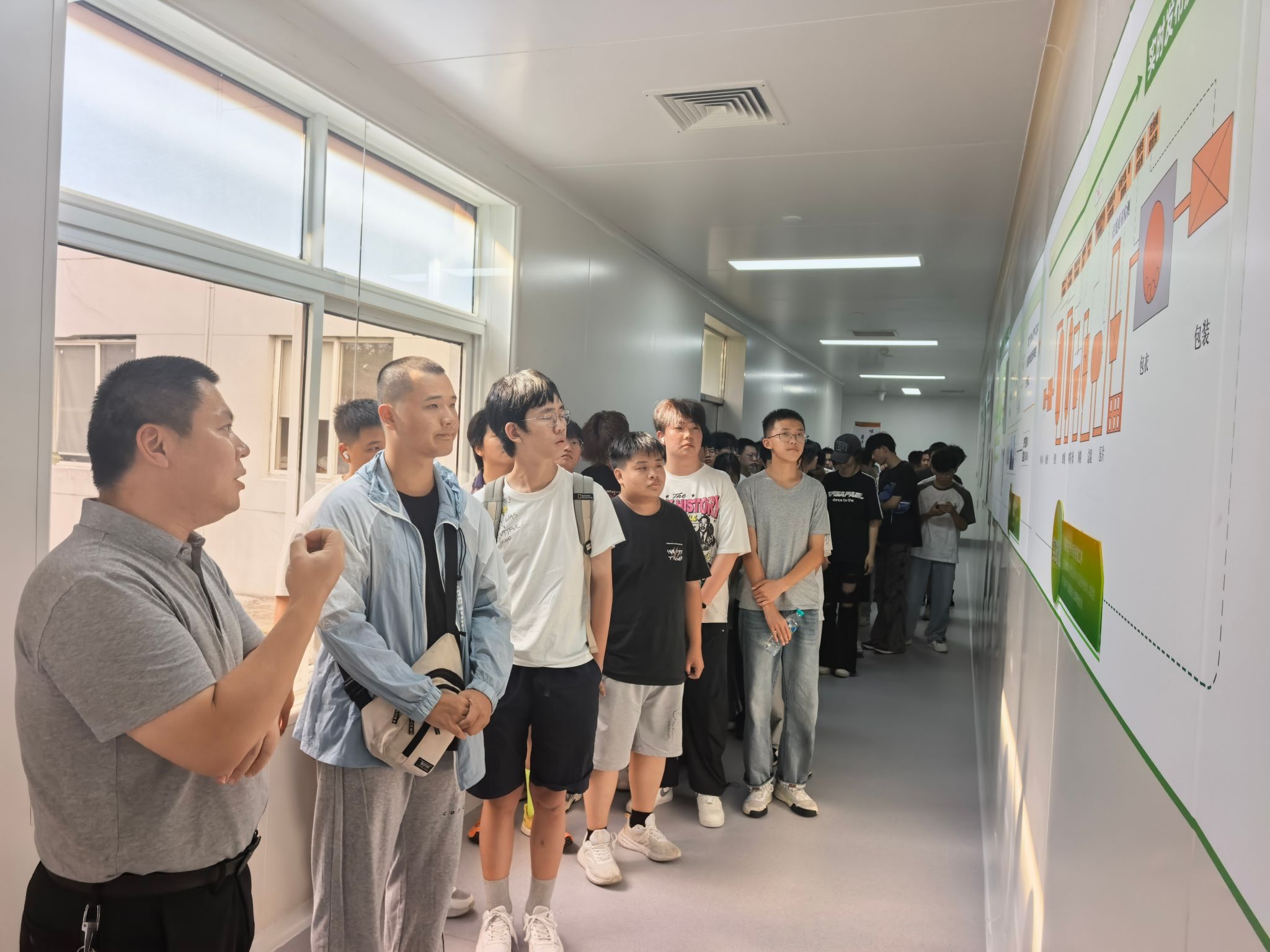 在企业展厅,讲解员向同学们详细介绍了公司的发展历程、产业布局及企业文化。同学们认真聆听,积极提问,对行业龙头企业的发展规模与技术实力有了直观地认识。
