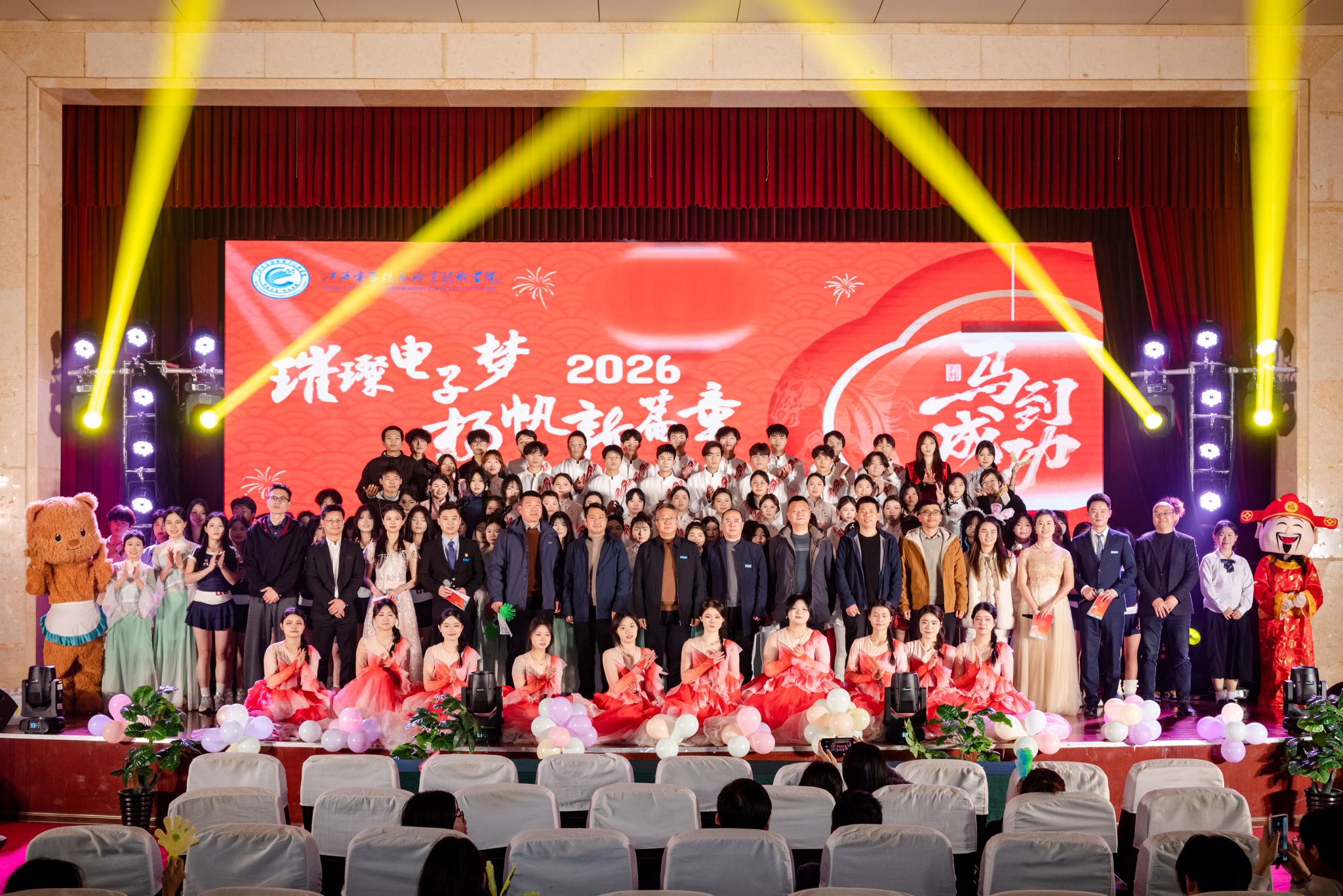 凯歌辞旧岁,奋进迎新春。1月13日下午,我校“璀璨电子梦 扬帆新篇章”2026年迎新年文艺汇演在高新校区学术报告厅举办。校党委书记肖红秋,党委委员、纪委书记江耀武,党委委员、副院长周重军及各二级学院负责人、教师代表、学子们欢聚一堂,在歌舞飞扬、情感交融中奏响新年启航的昂扬序曲。