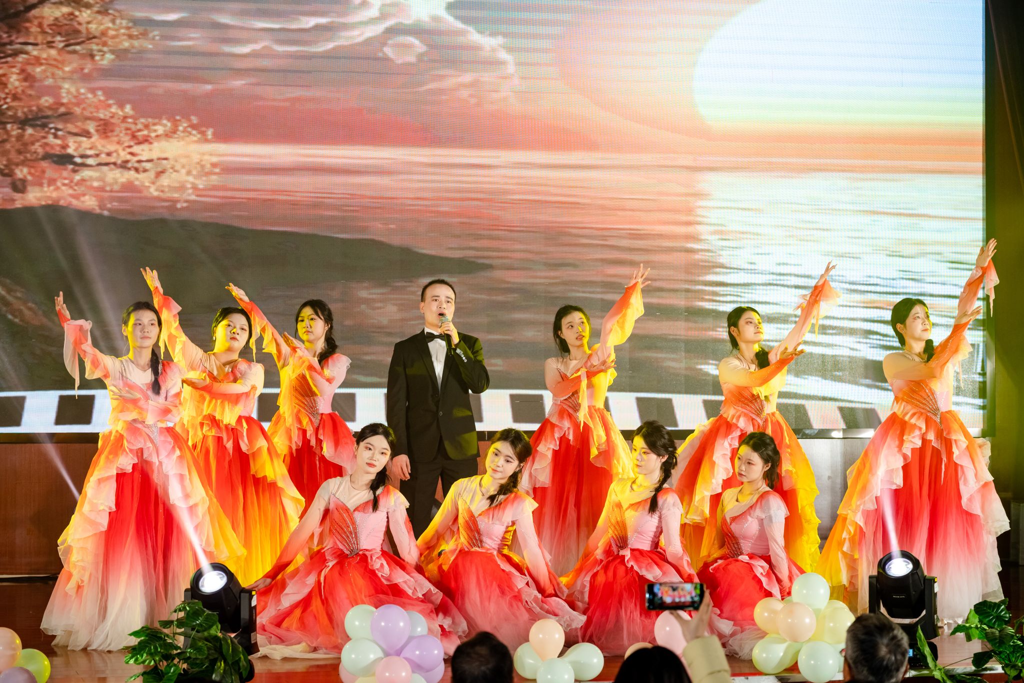 伴随着阵阵掌声与欢呼声,本次文艺汇演圆满落幕。肖红秋书记高度评价演出成果,指出整场汇演主题鲜明、节目精美、情感真挚,是学校落实立德树人根本任务、推动文化育人的生动体现。他勉励全体师生要以此为契机,将舞台上凝聚的激情与梦想转化为学习工作中的实干力量,以更加昂扬的姿态、更加务实的作风,勇担“璀璨电子梦”的使命,在2026年扬帆起航、携手共进,书写学校高质量发展与个人成长成才交融共进的崭新篇章。
